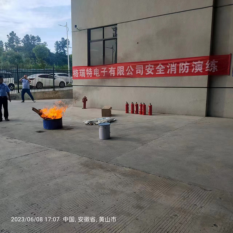 6月8日,安徽格瑞特電子有限公司開展以“消除火災隱患 筑牢安全屏障”為主題的消防應急演練。